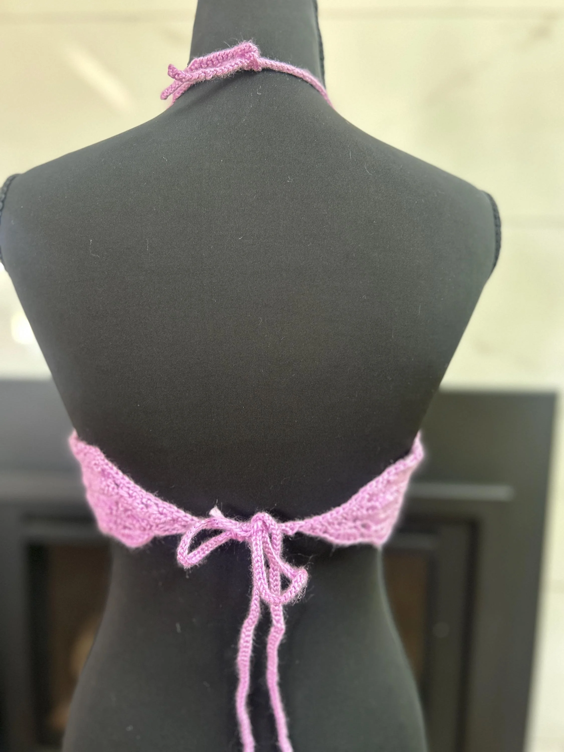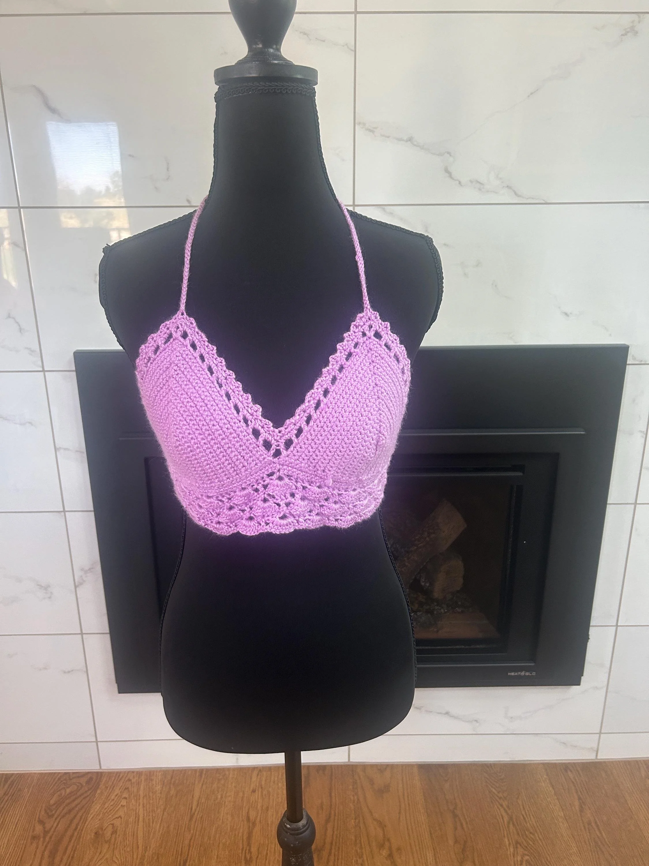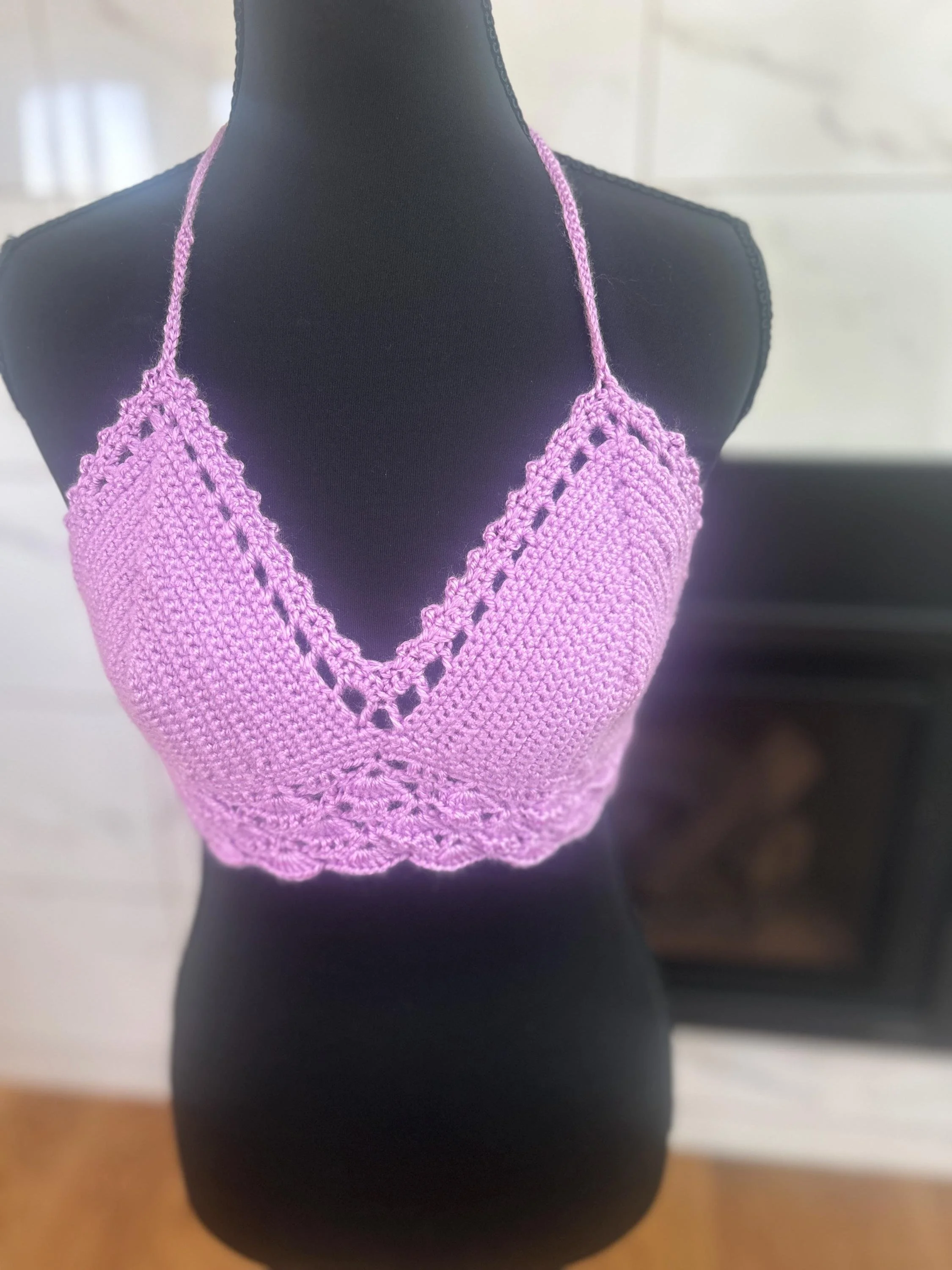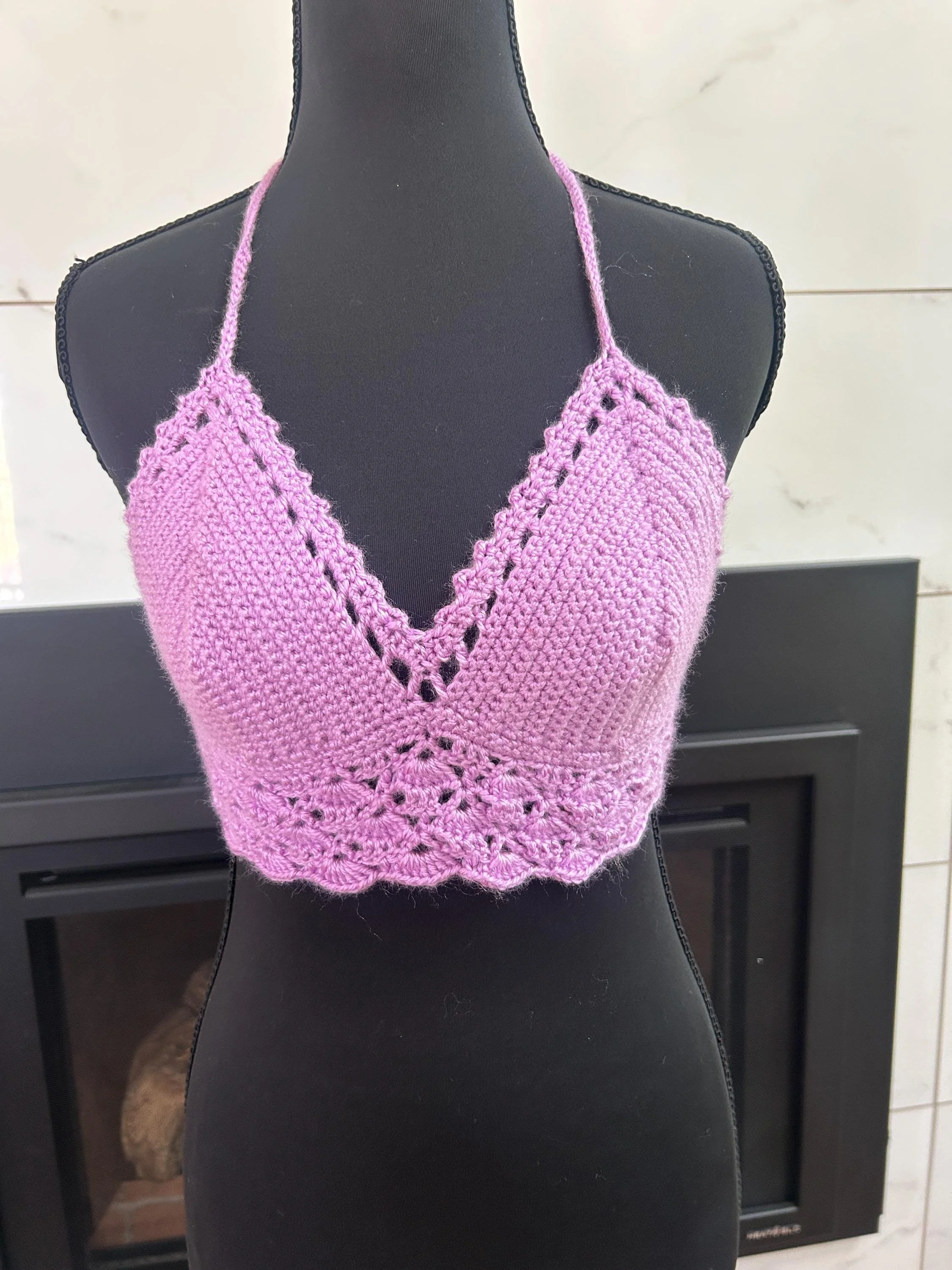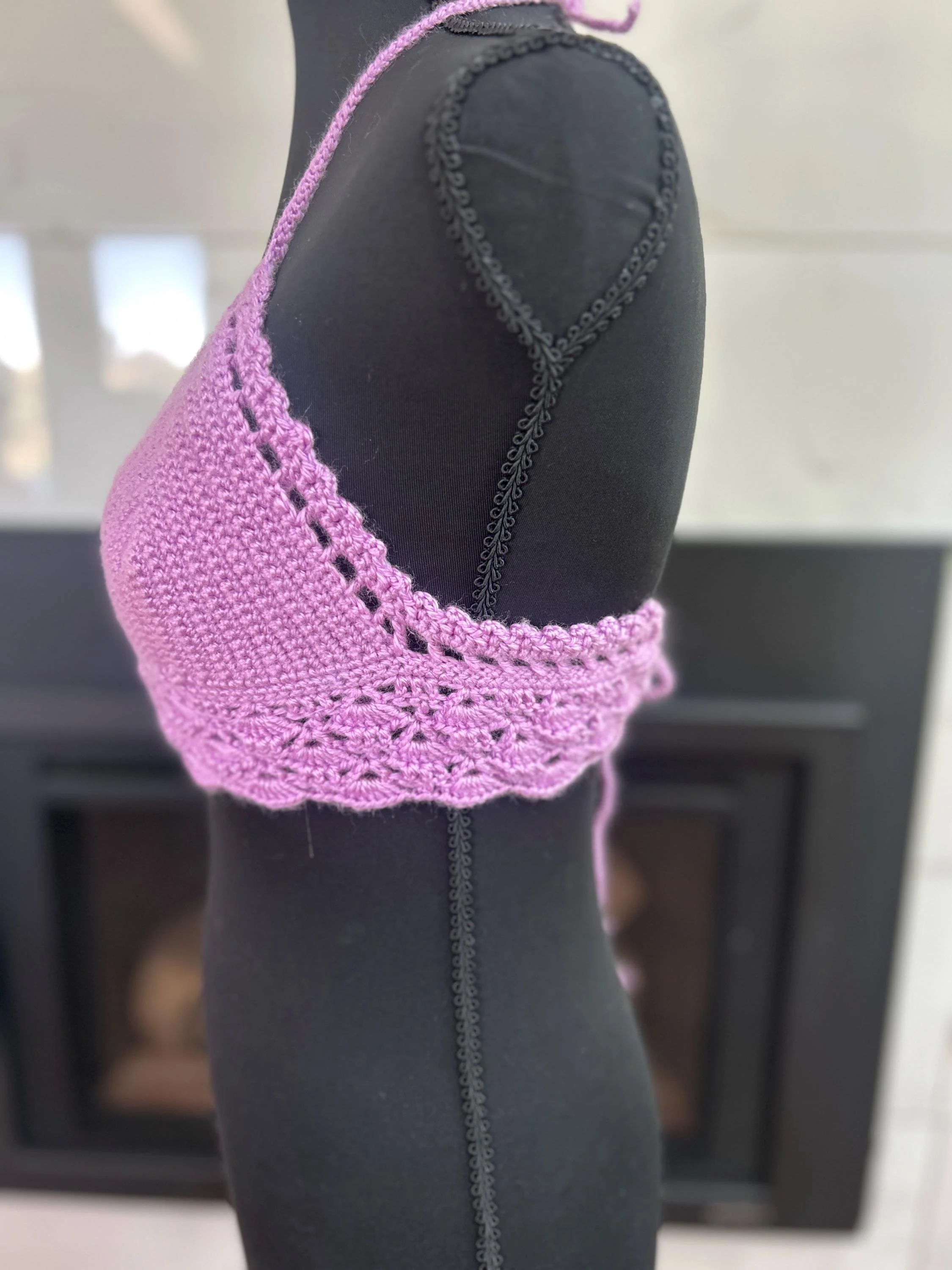 Handmade Lavender Crochet Halter Top – A/B Cup – Boho Festival Top