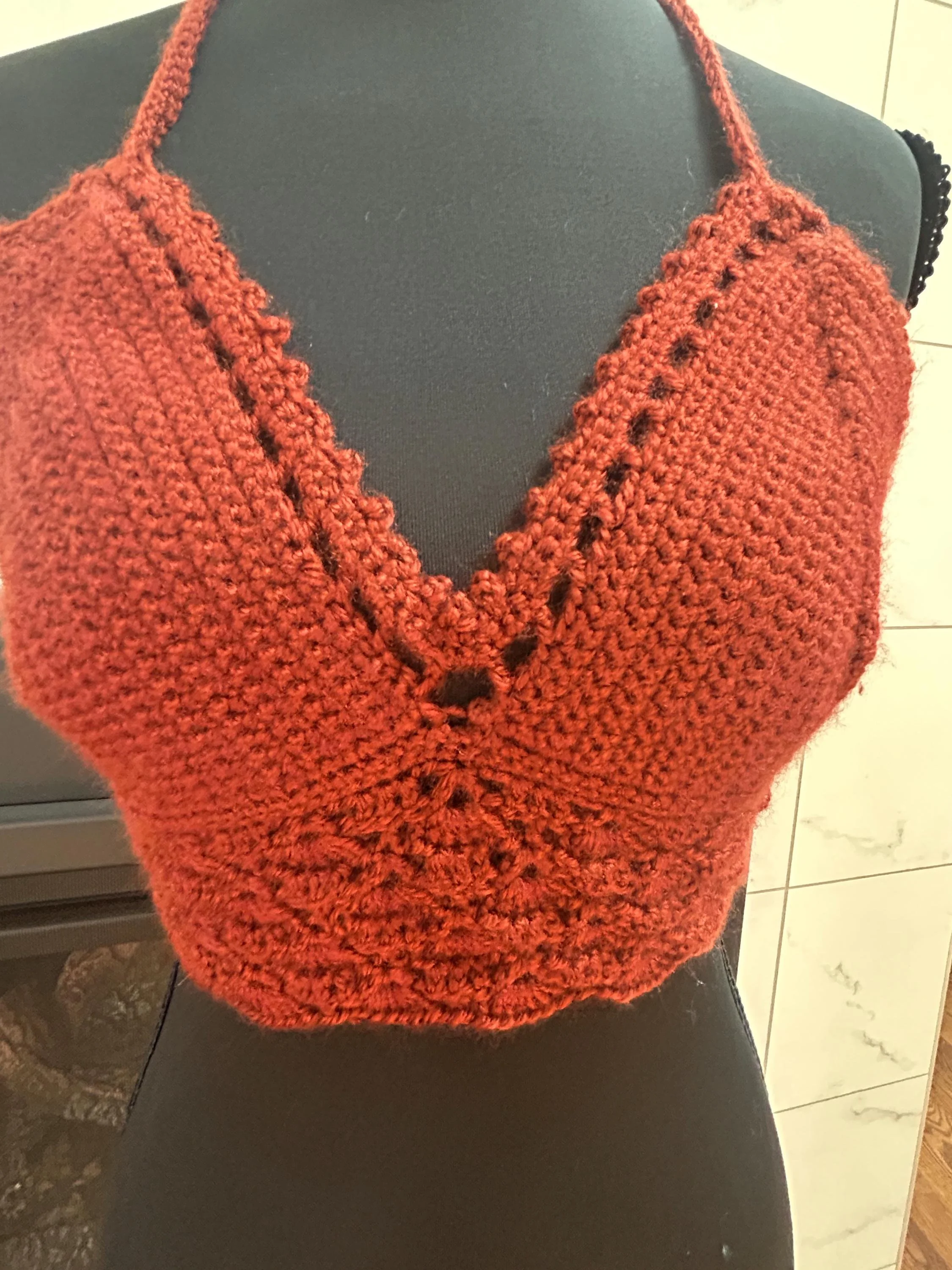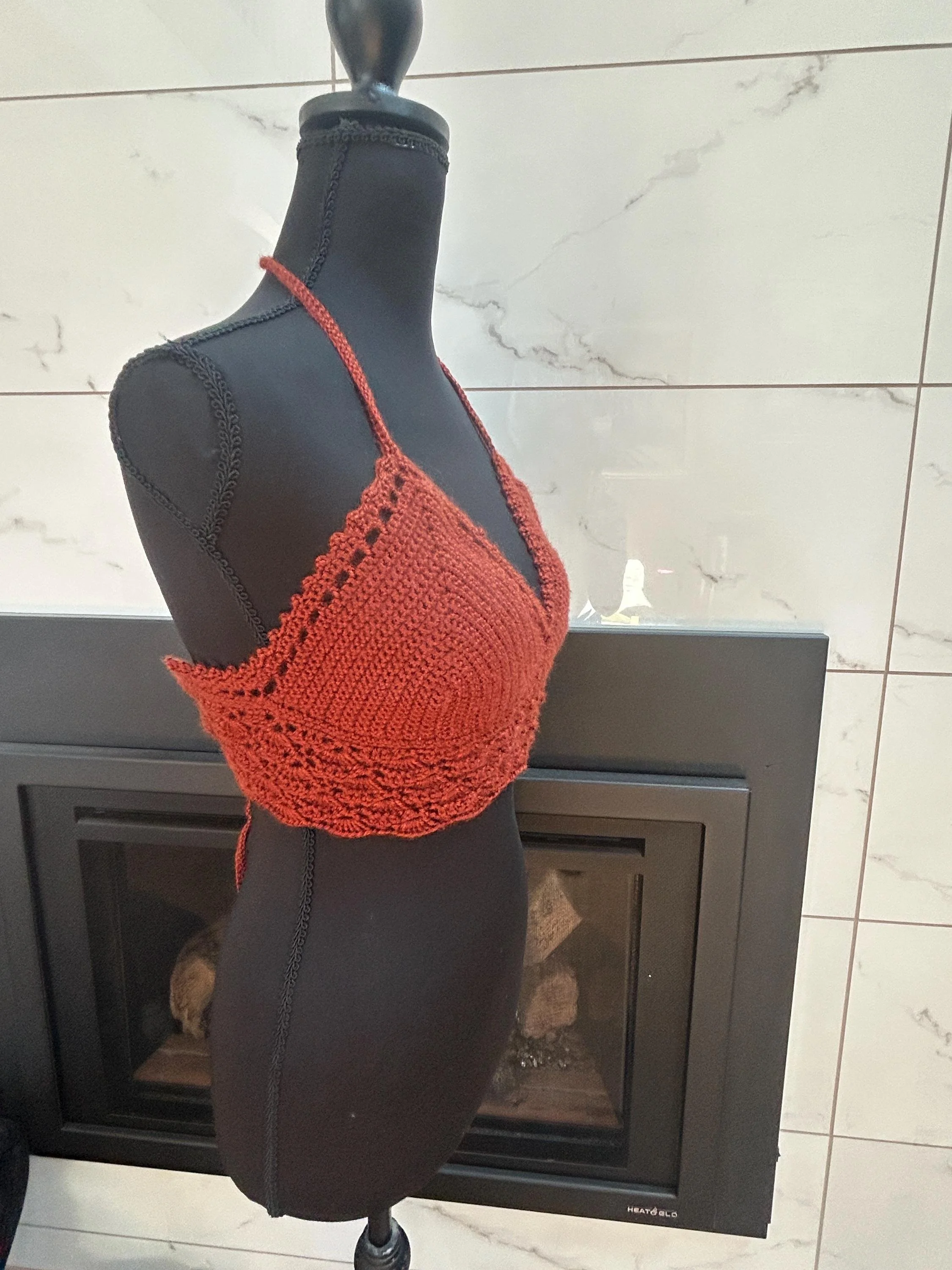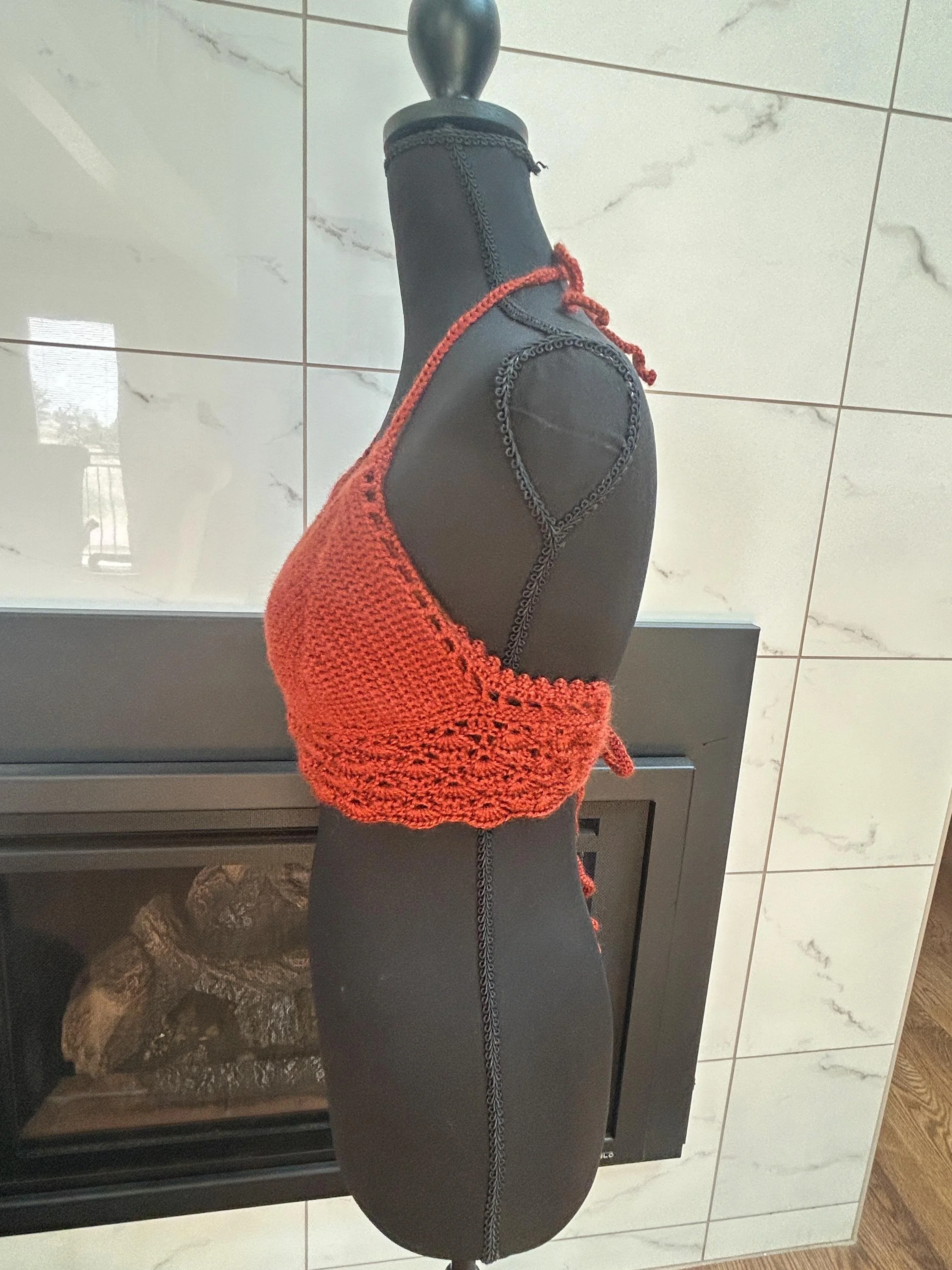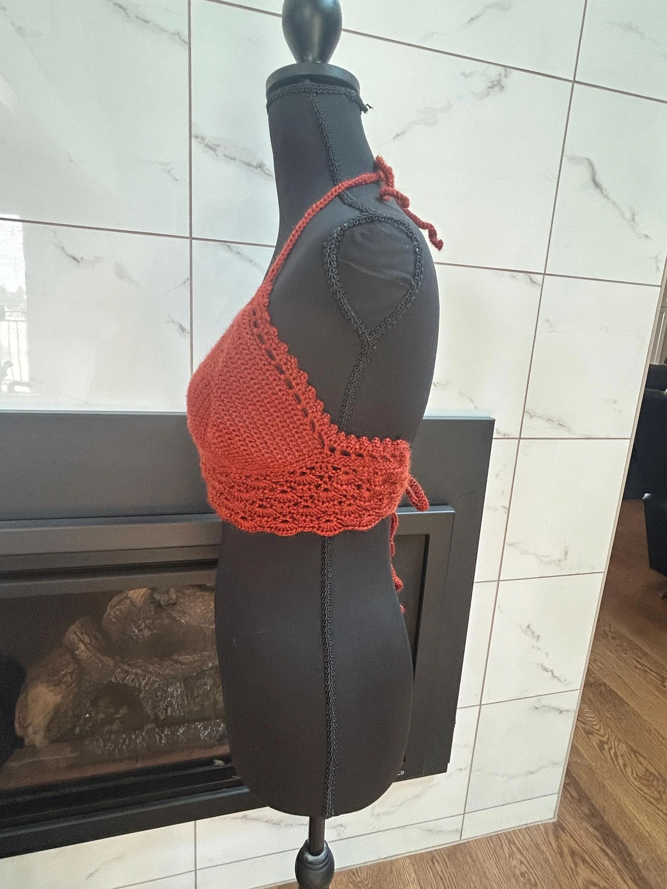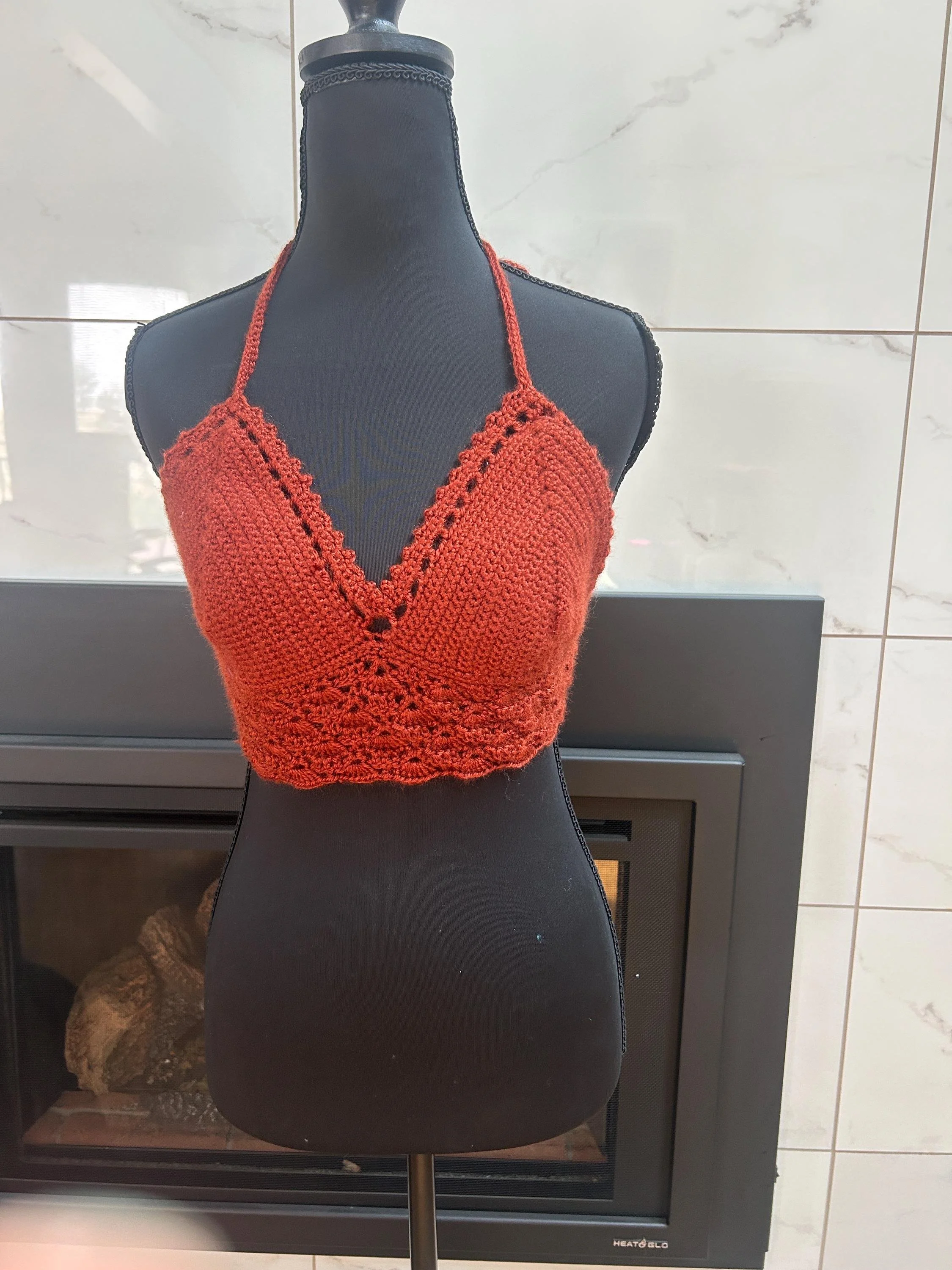 Handmade Rust Crochet Halter Top: Boho Fall Fashion