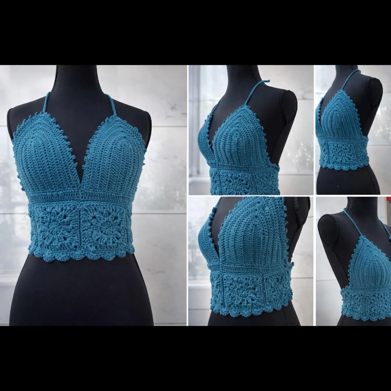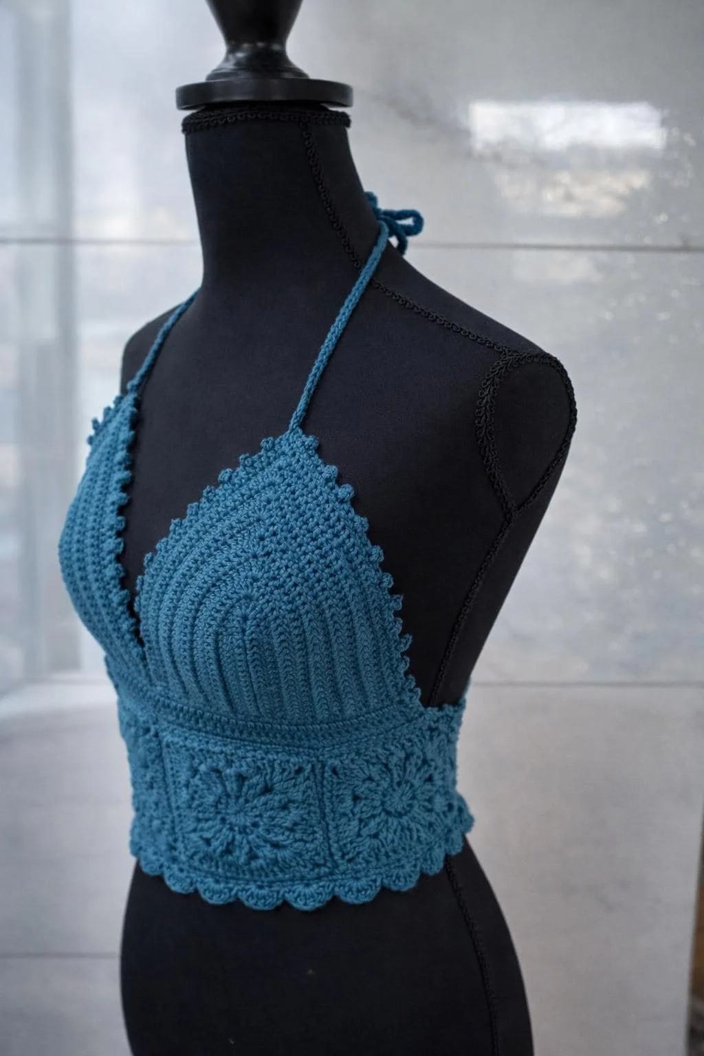 Teal Crochet Halter Top | Handmade Boho Crop Top | Festival Bralette | Cotton Summer Top | Adjustable Back | Custom Fit
