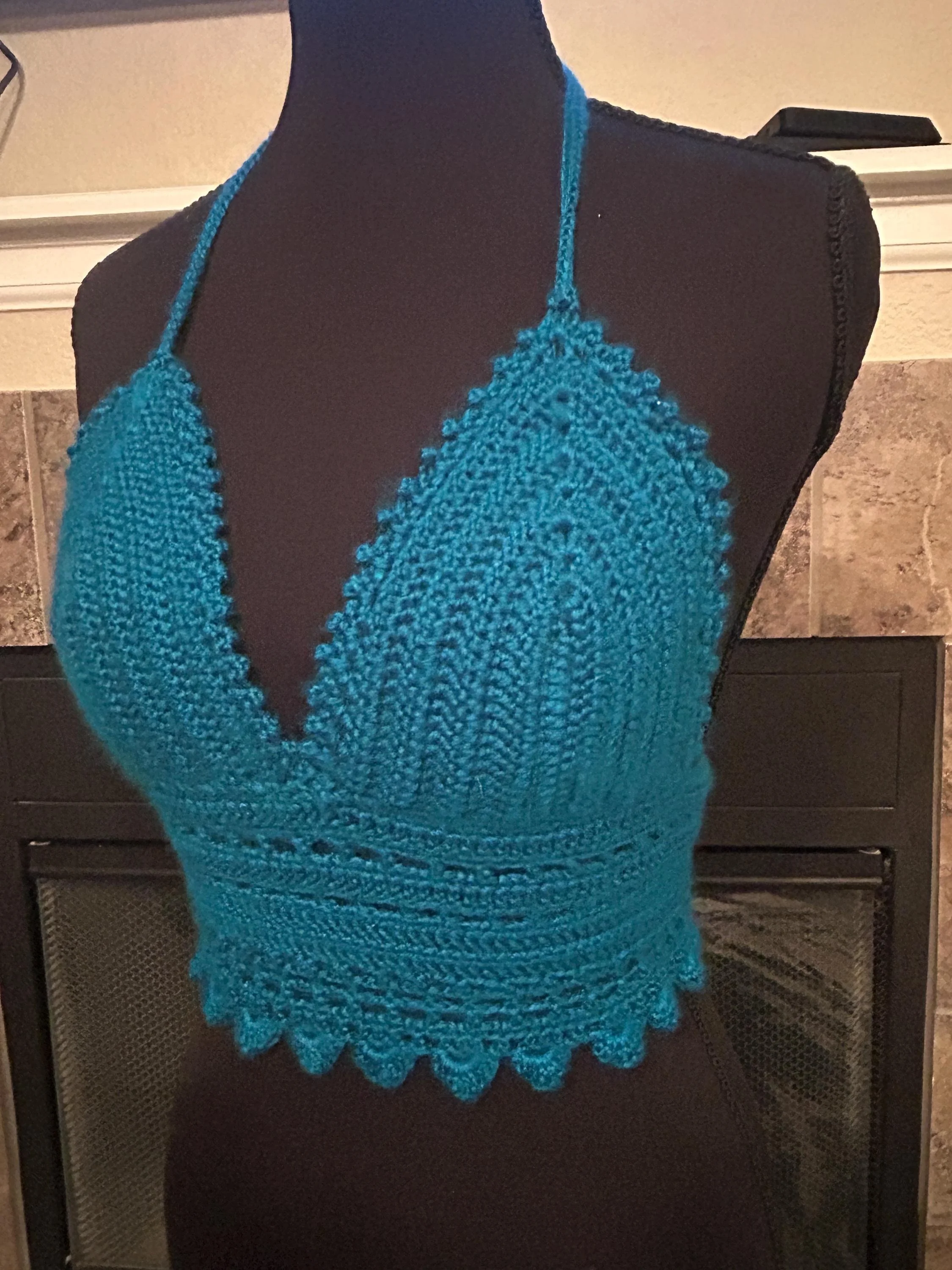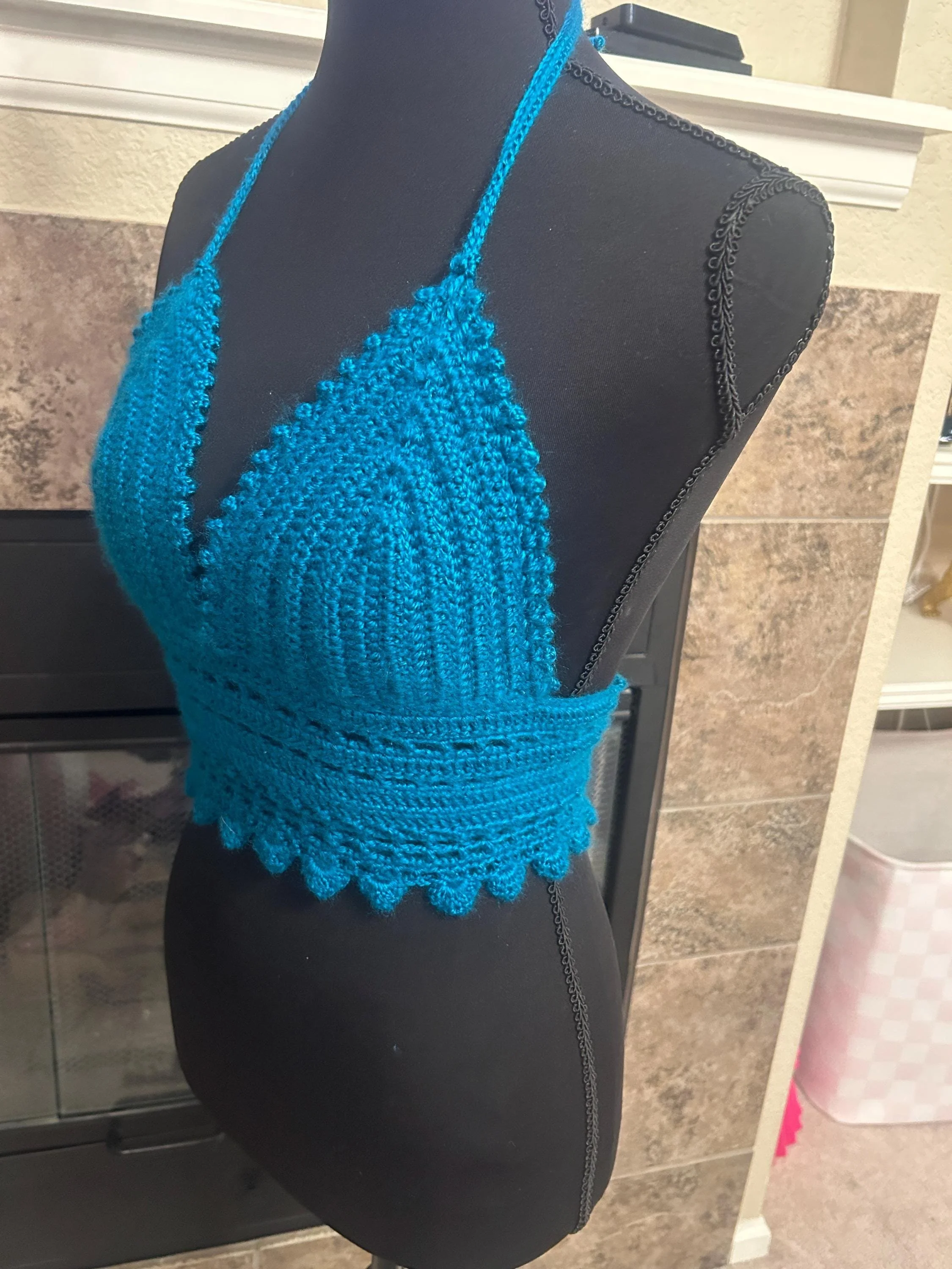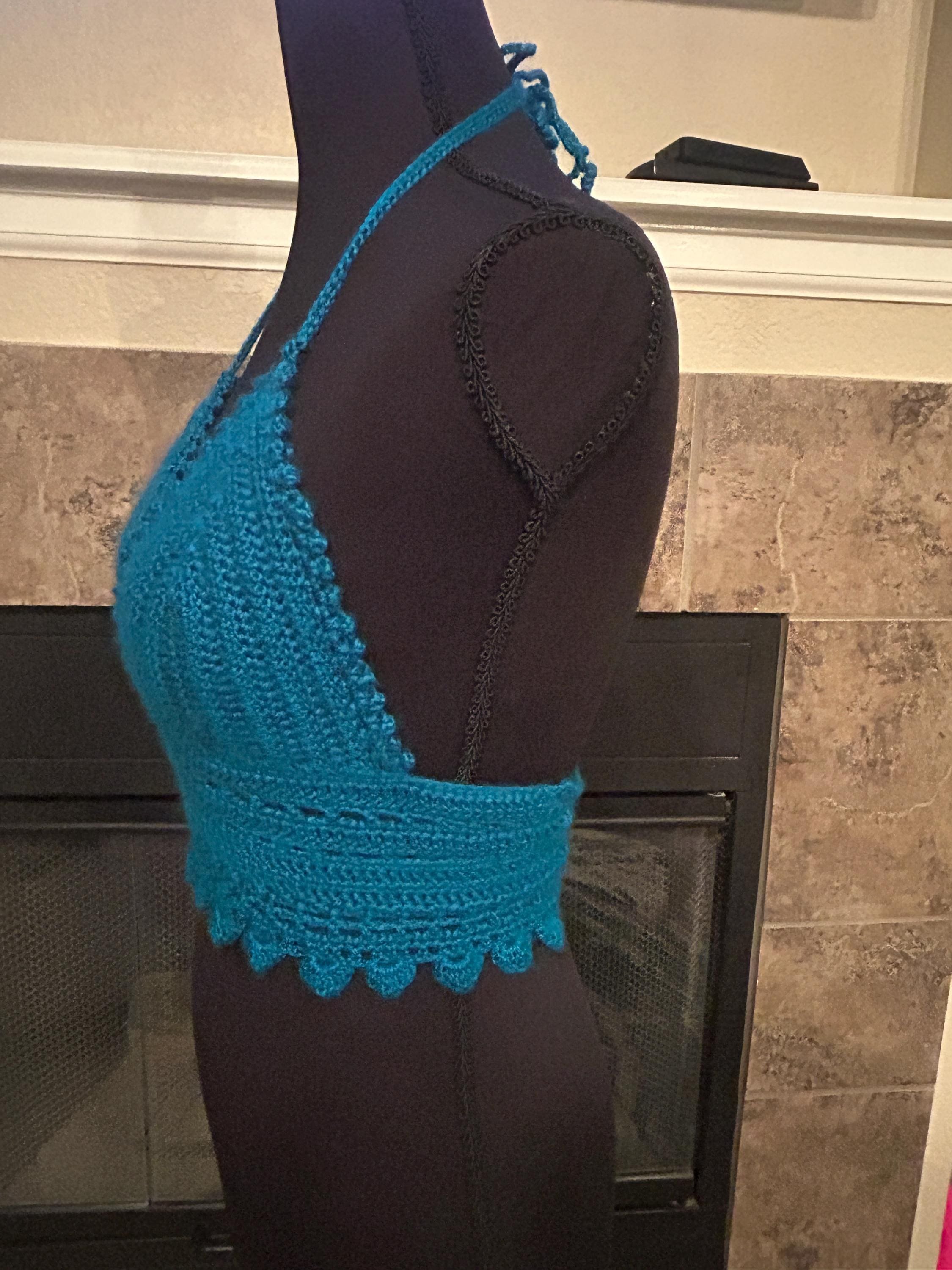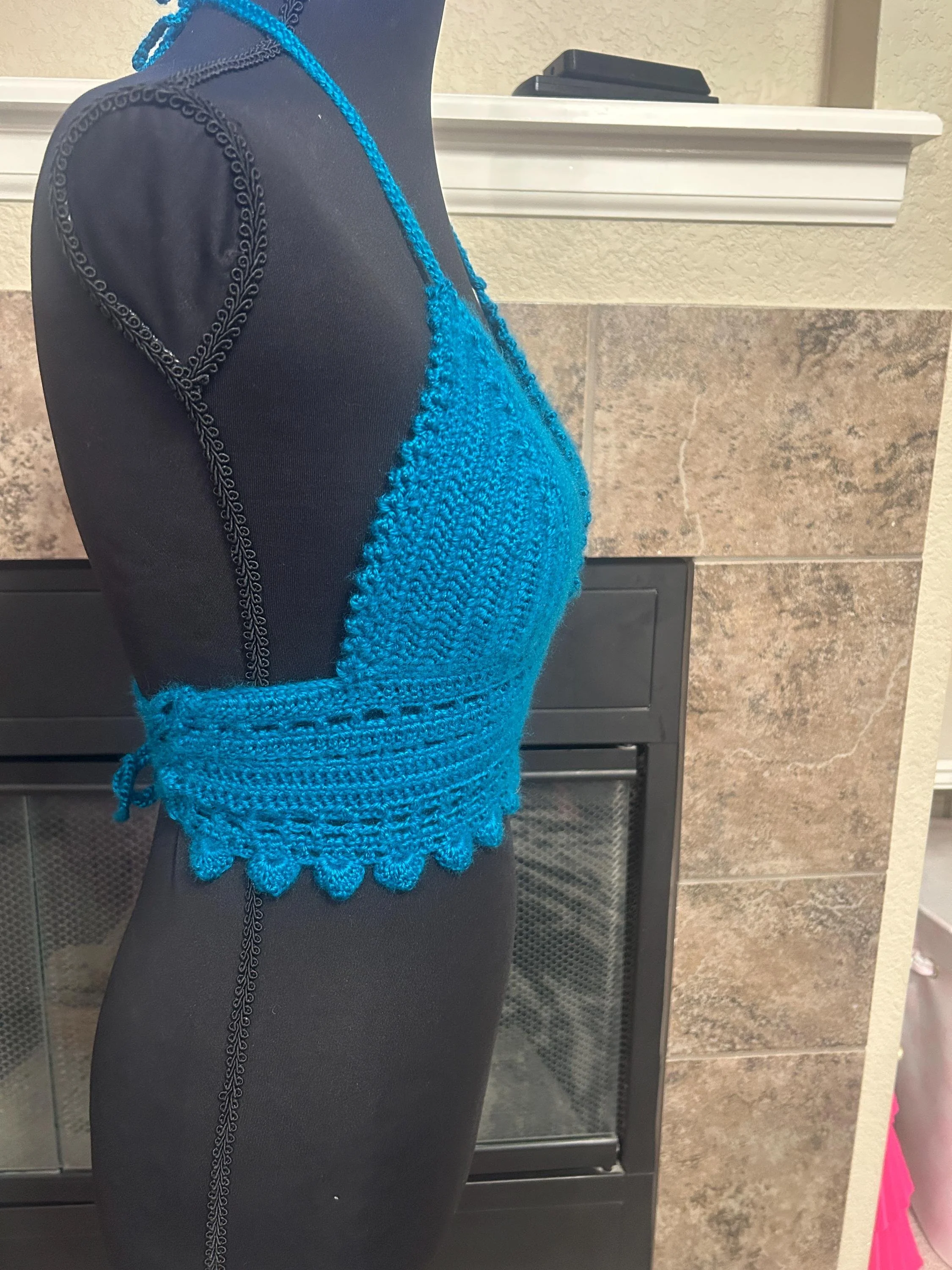 Turquoise Crochet Halter Top - Handmade Boho Festival Bralette