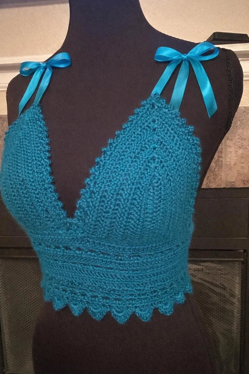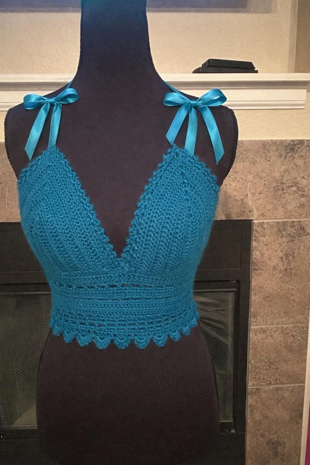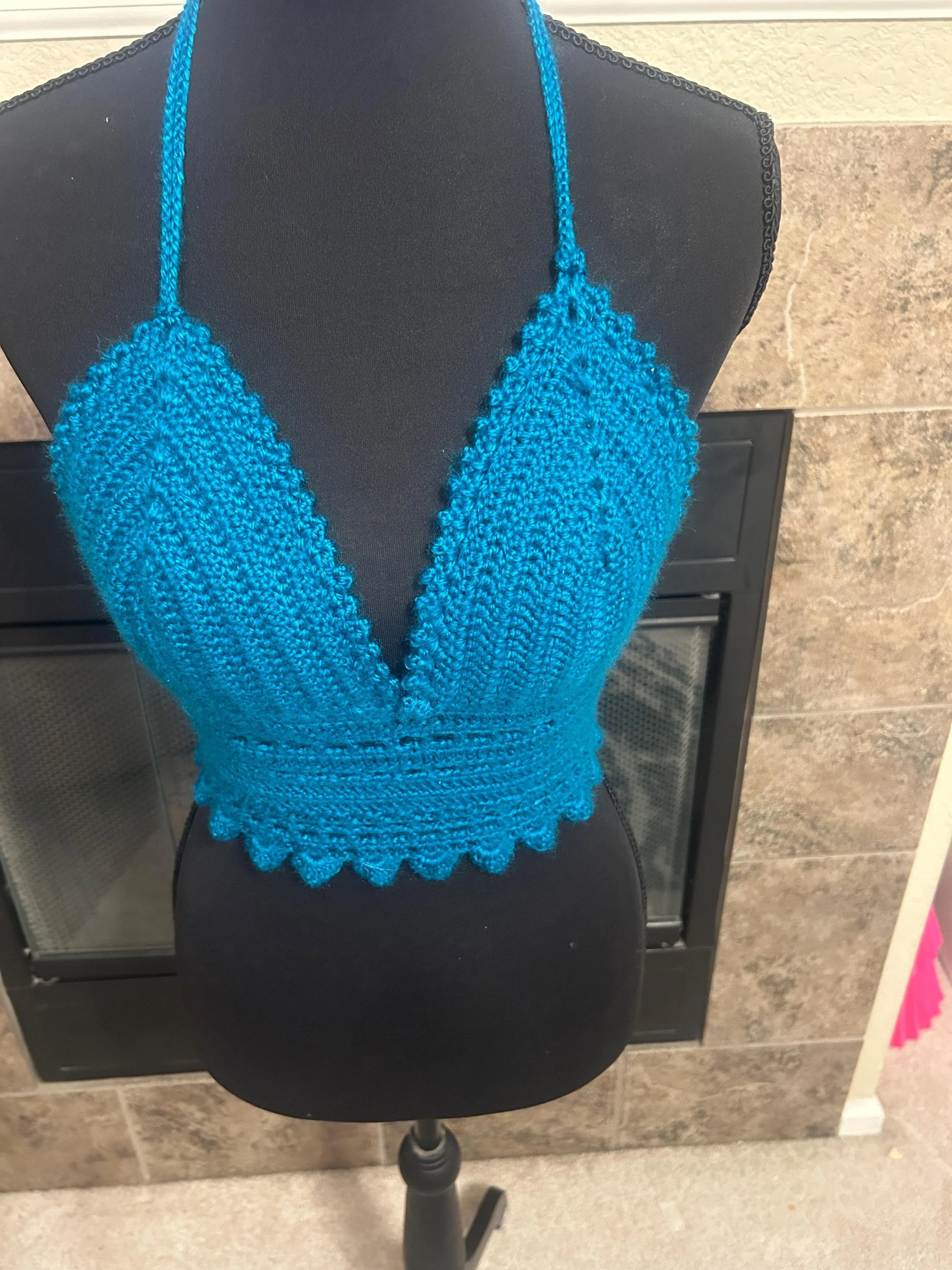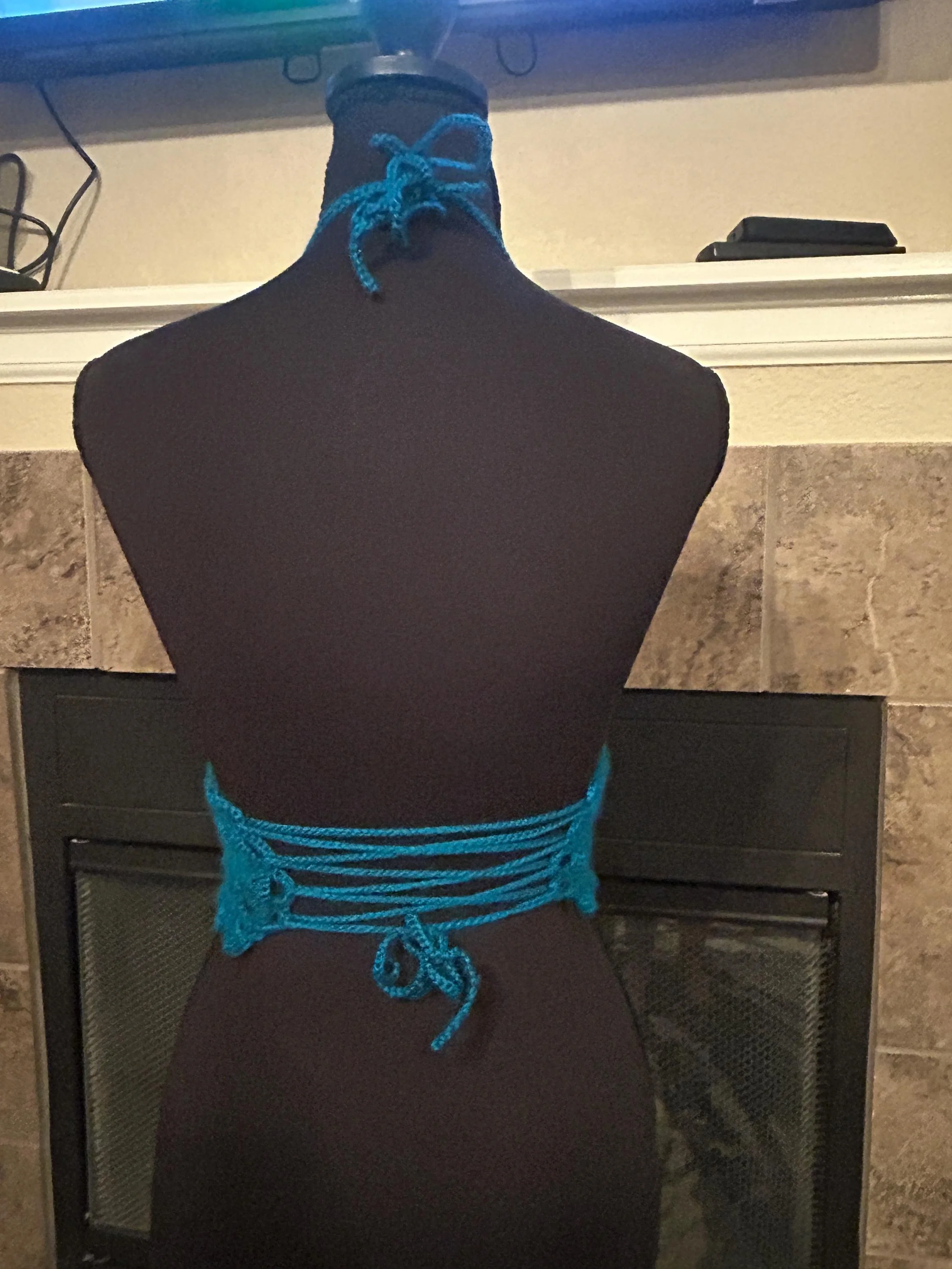 Turquoise Crochet Halter Top - Handmade Boho Festival Bralette