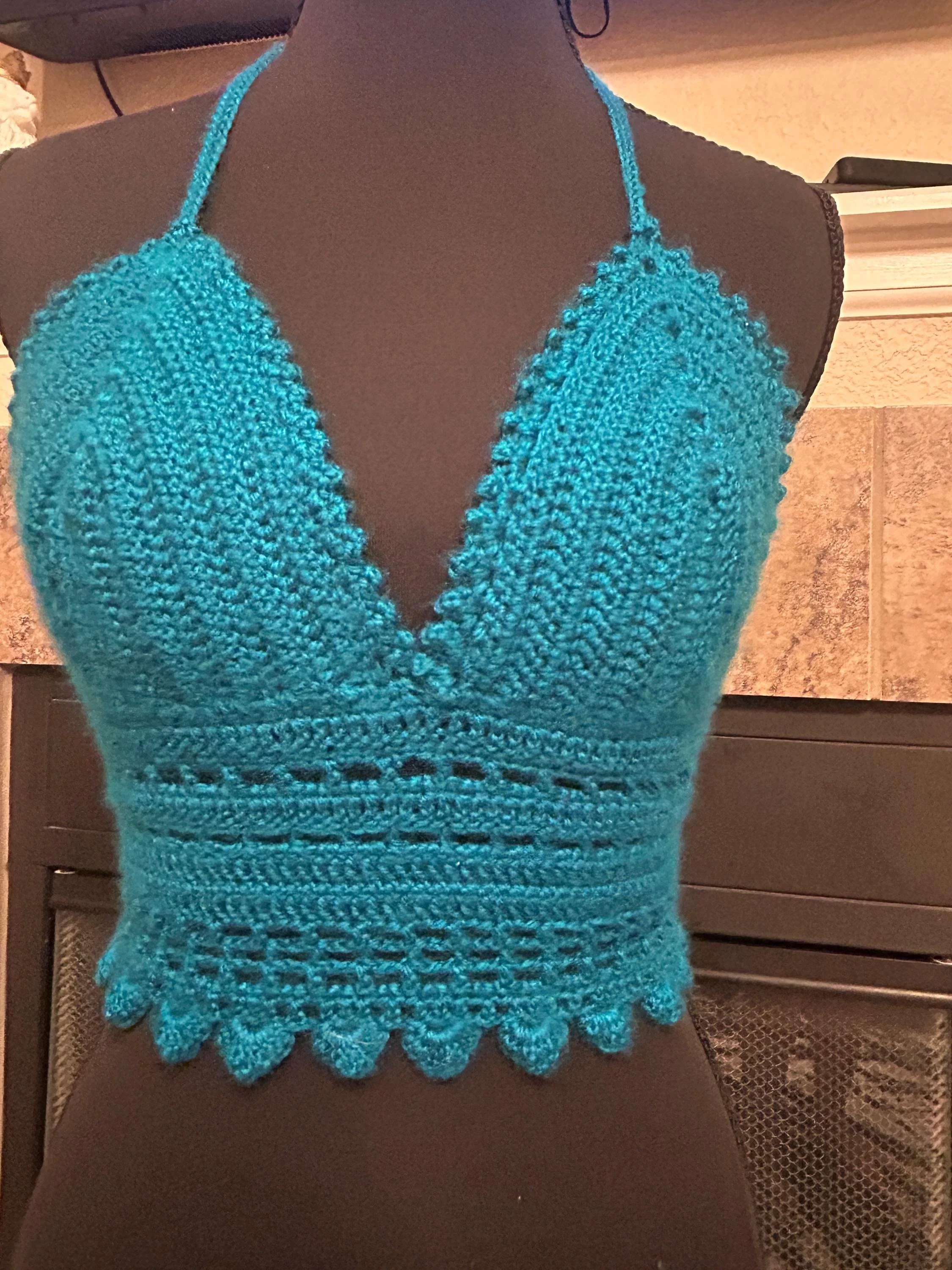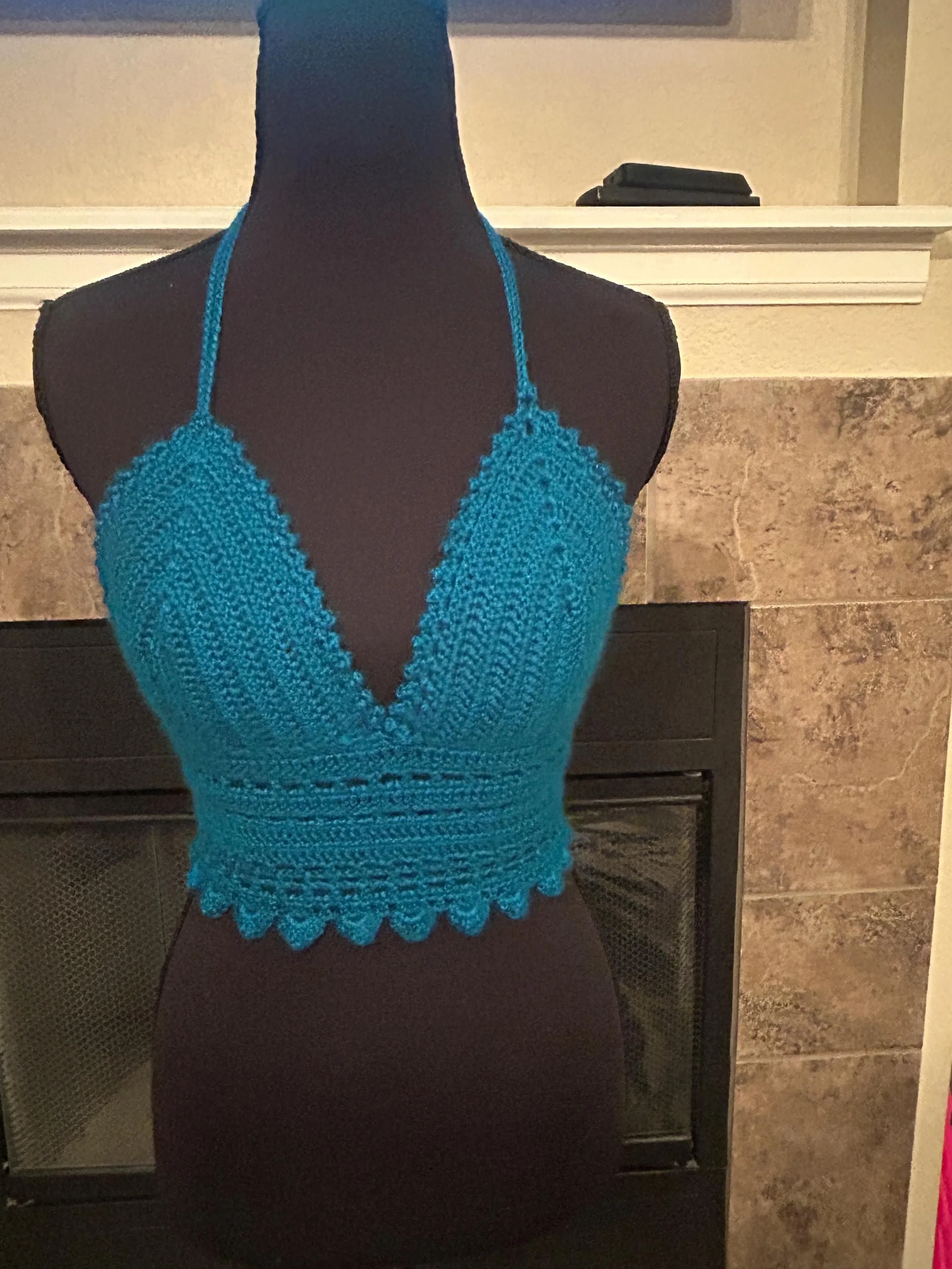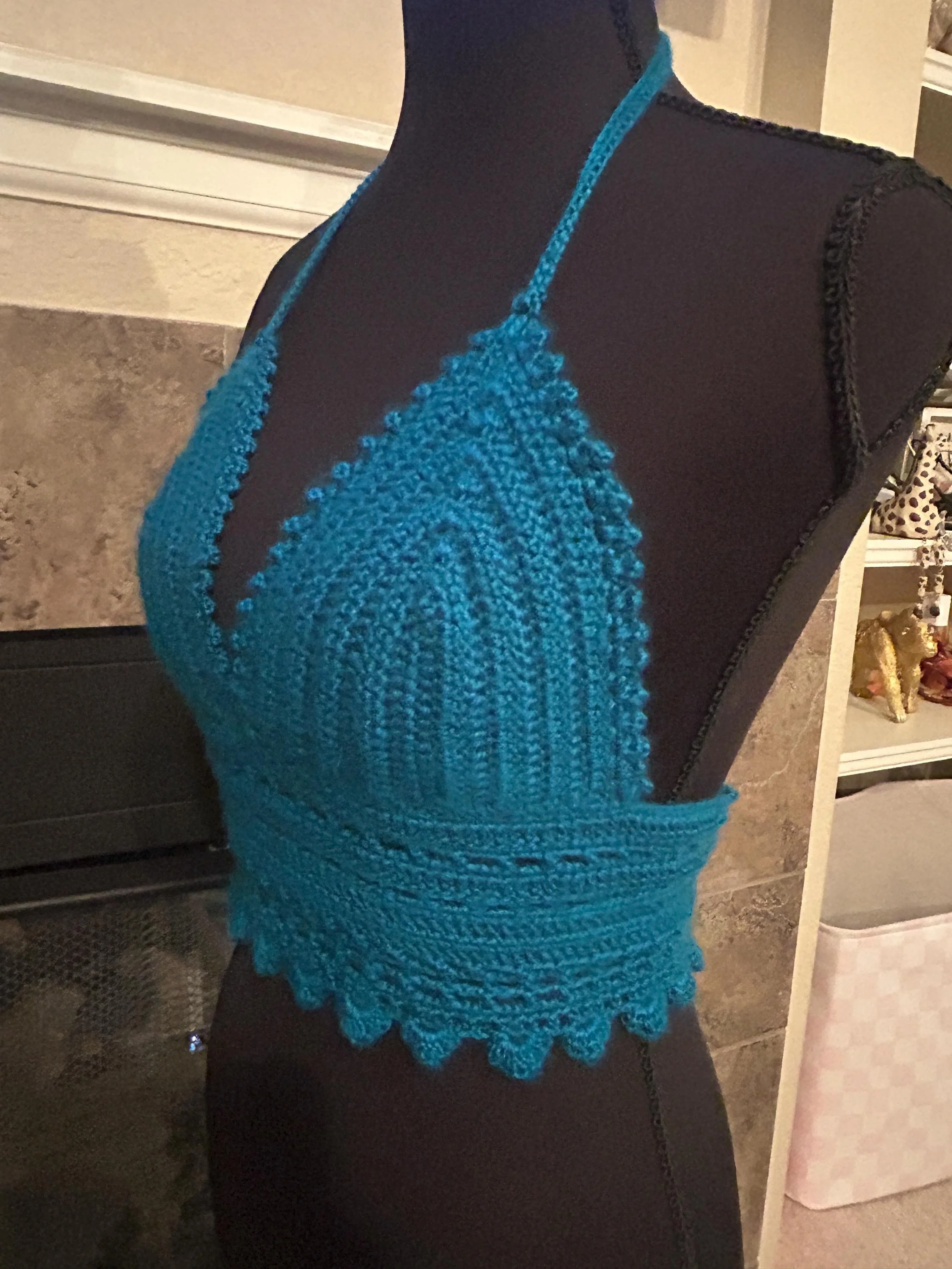 Handmade turquoise crochet halter top designed to stand out ✨ This boho festival bralette is soft, comfortable, and perfect for concerts, beach days, and summer adventures. Each stitch is carefully crafted to create a flattering fit and eye-catching texture.