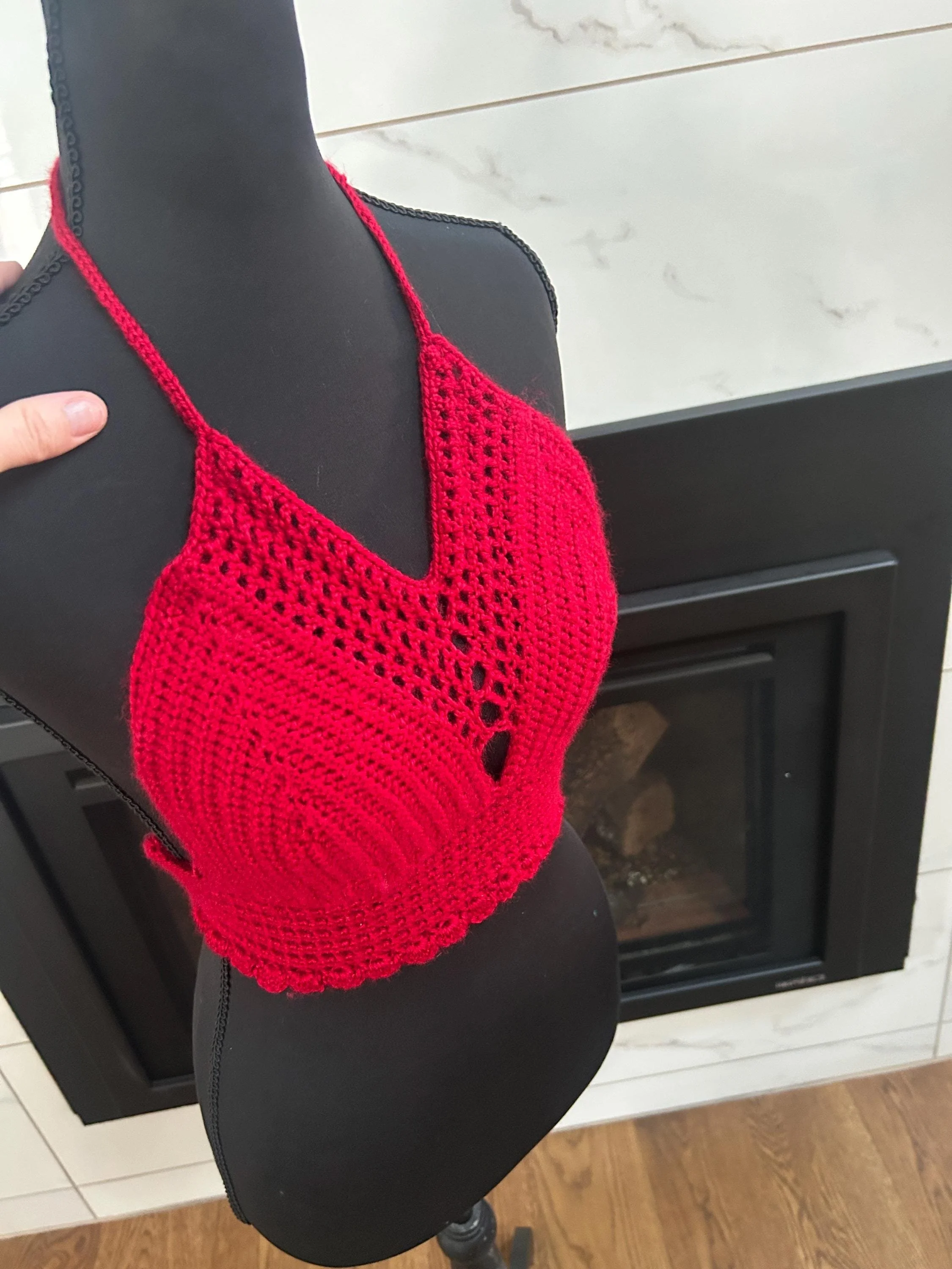 Handmade Crochet Halter Crop Top – Bold Red Festival & Boho Style