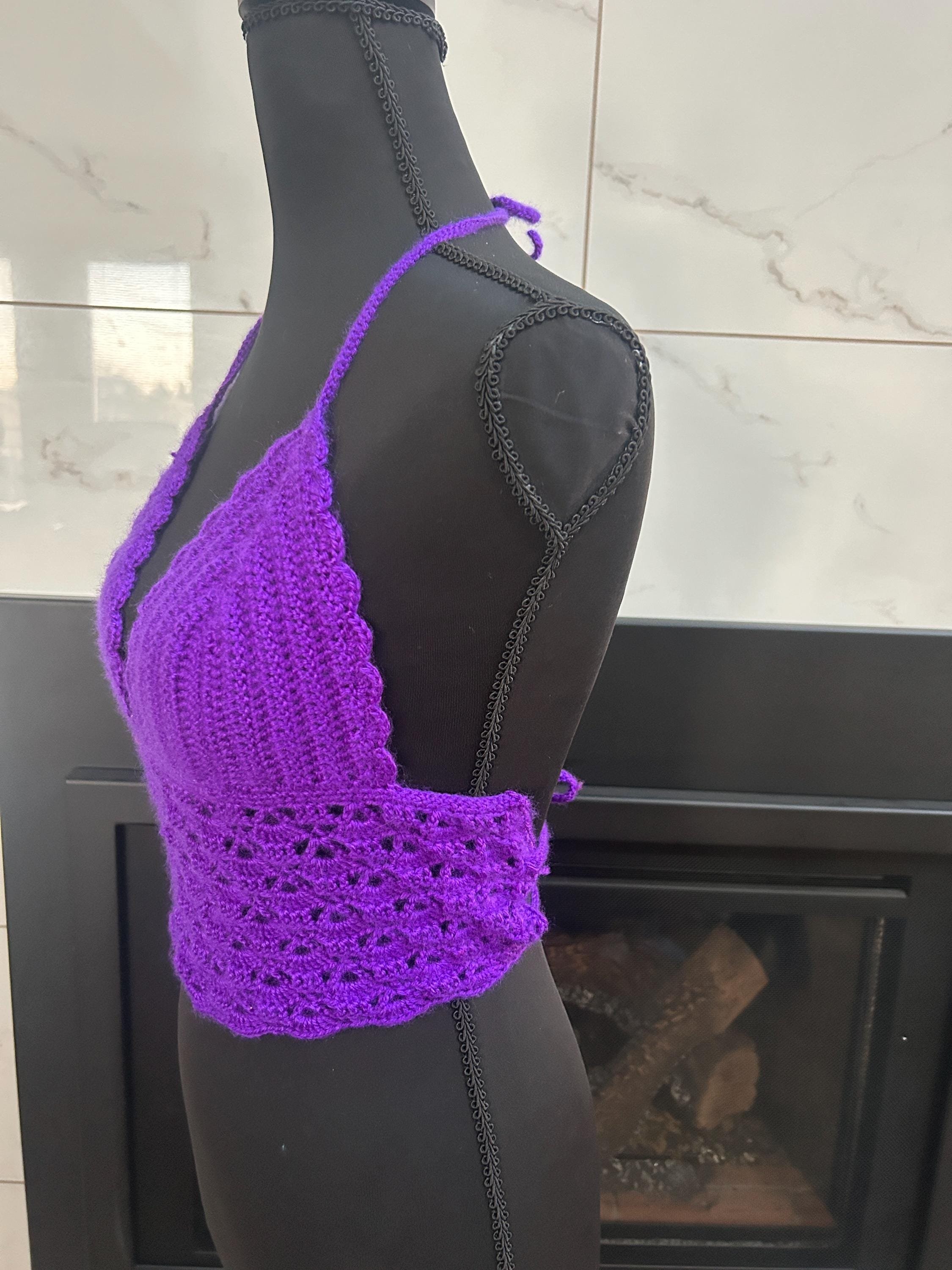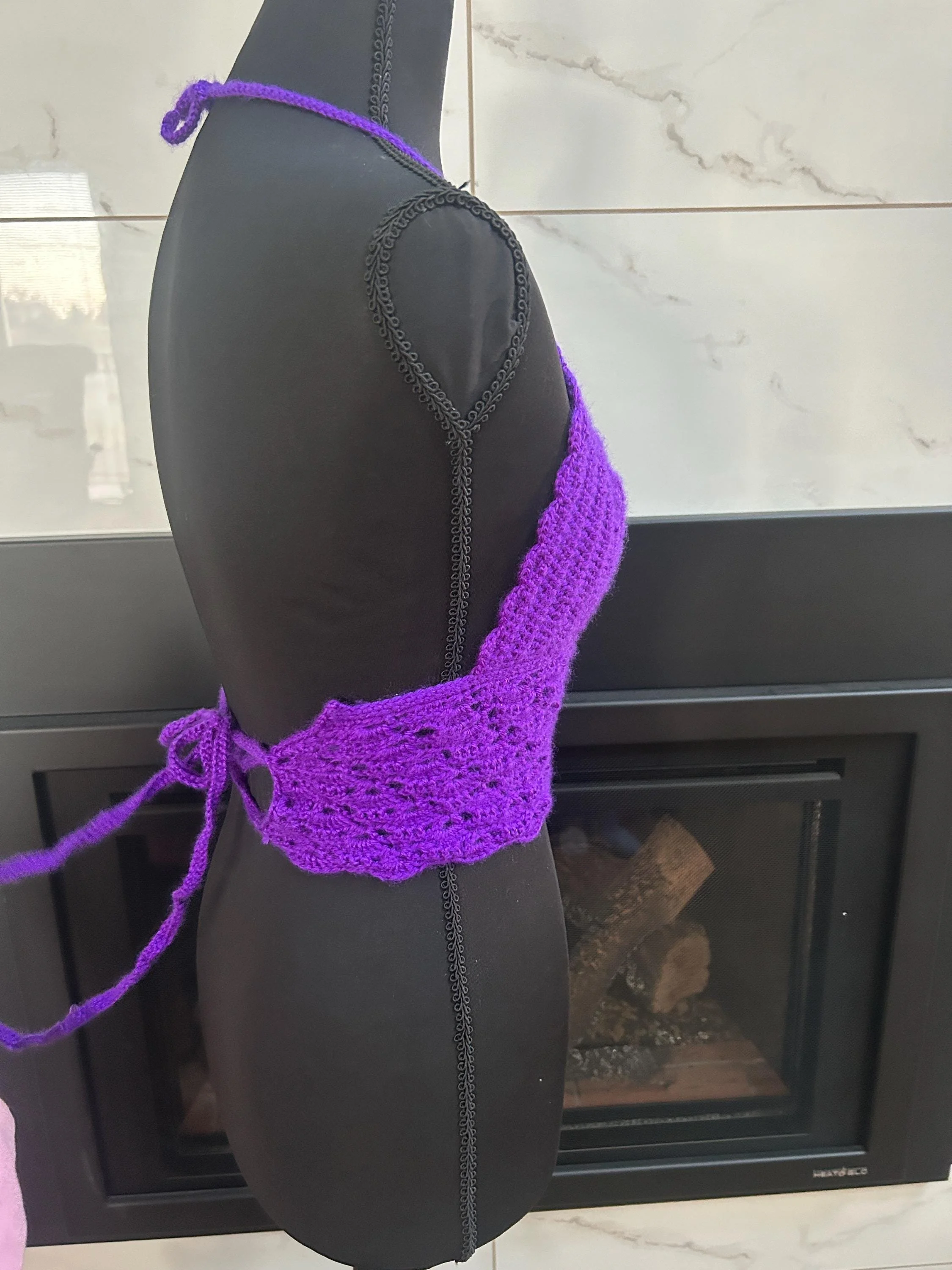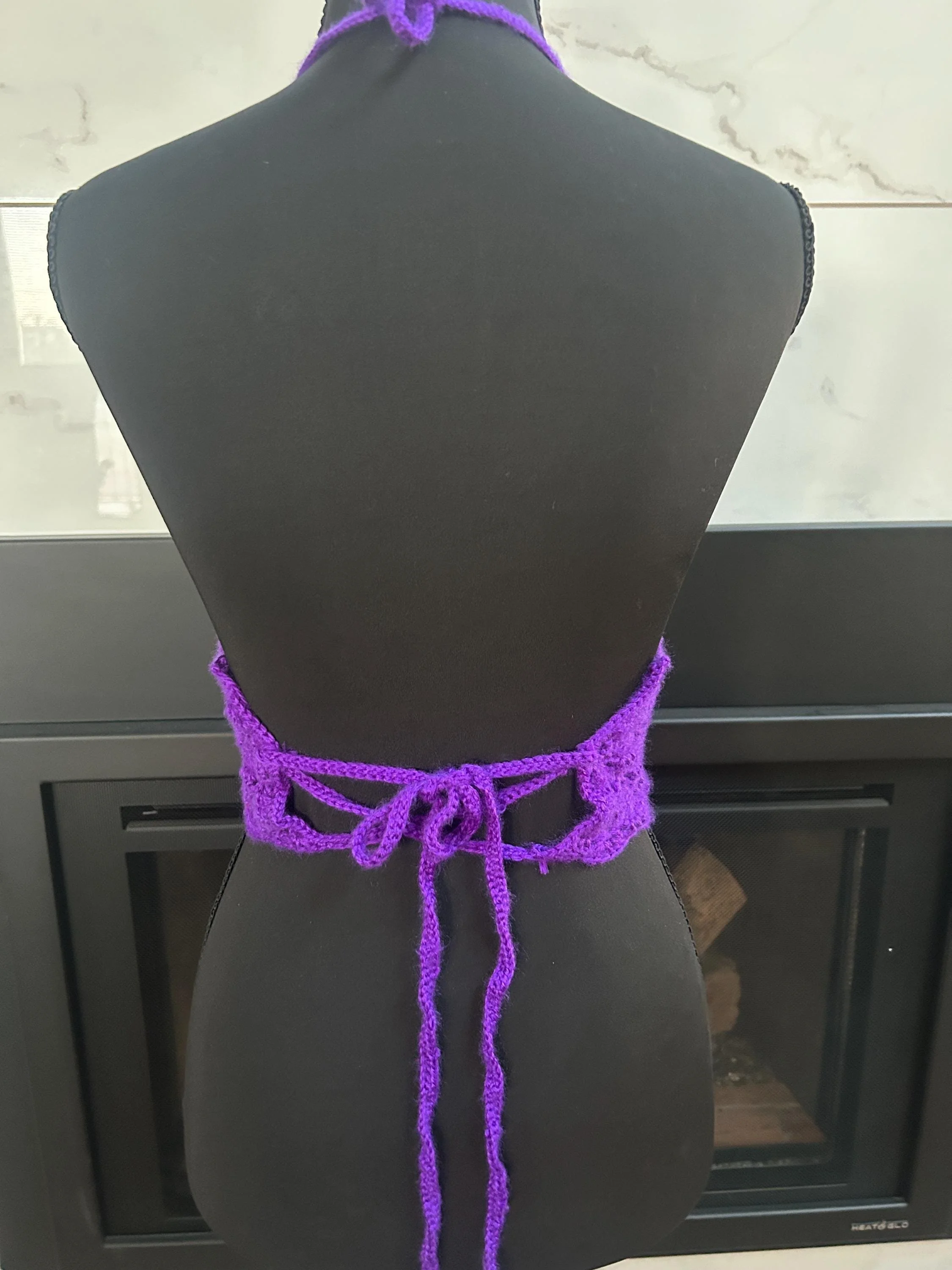 Handmade Crochet Halter Crop Top – Deep Purple Boho Festival Style